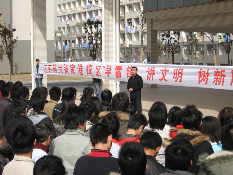 2008年,时任校区党工委副书记沈贻森在学雷锋启动仪式上讲话