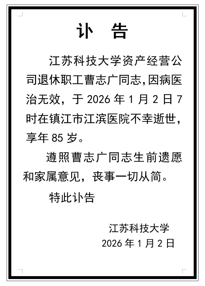 曹志广同志讣告