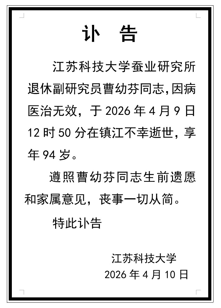 曹幼芬同志讣告