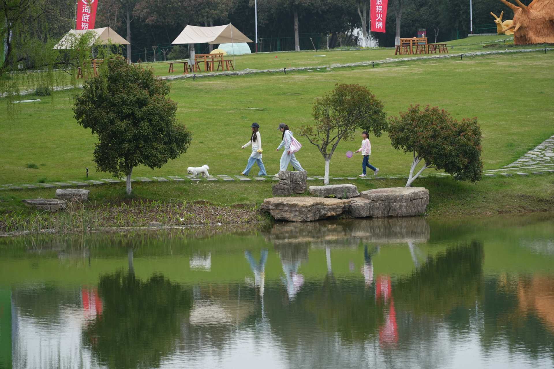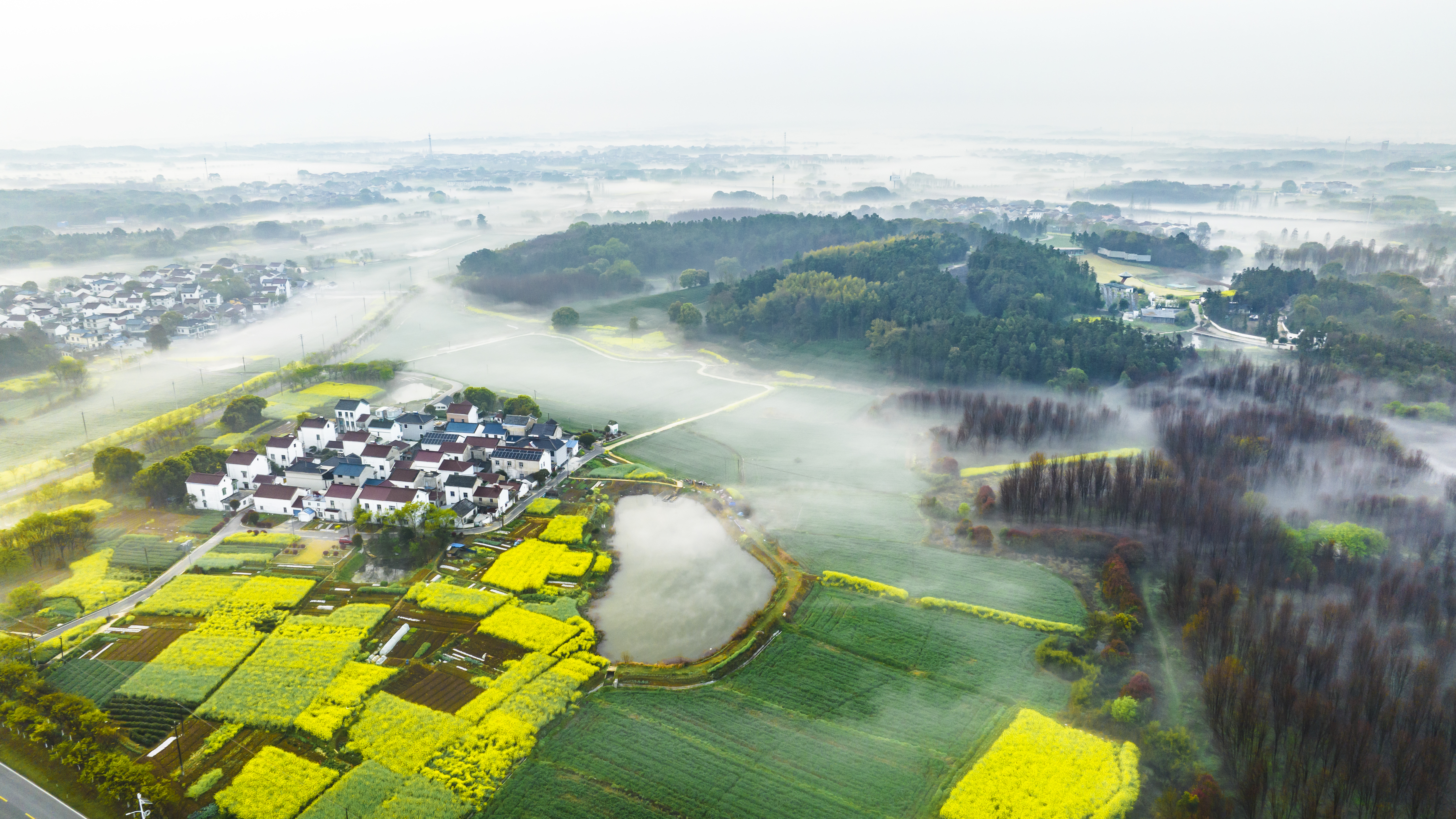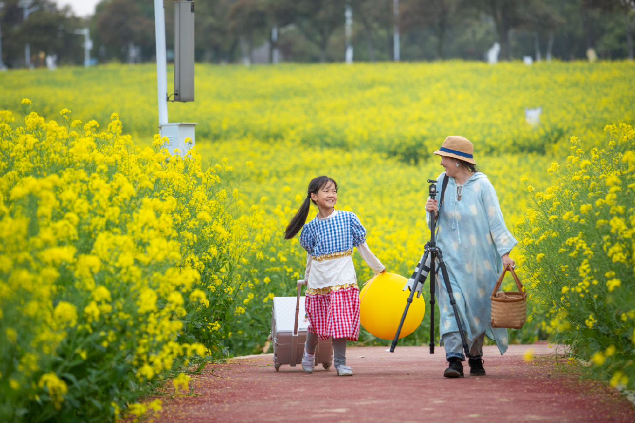 随后大家走进高淳桠溪慢城,万亩油菜花田金黄遍野,与连片茶园交相辉映,白墙黛瓦点缀其间,构成江南田园画卷。